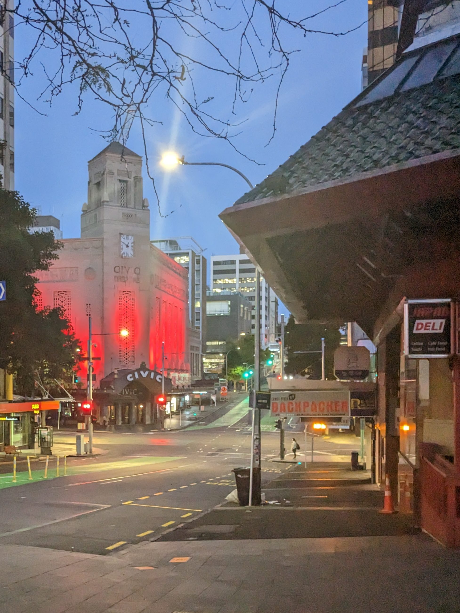 After returning our car at the airport, we took a shuttle to Auckland city center, then walked a few blocks to the nearby hostel I had booked for the evening (pictured below). I’m still adjusting to hostel accommodations, and was surprised when they handed us bedding at the front desk when we checked in. There were lots of people, but all were fairly quiet, and we had an early morning so I went to bed fairly early after settling into the room we shared with two other travelers.