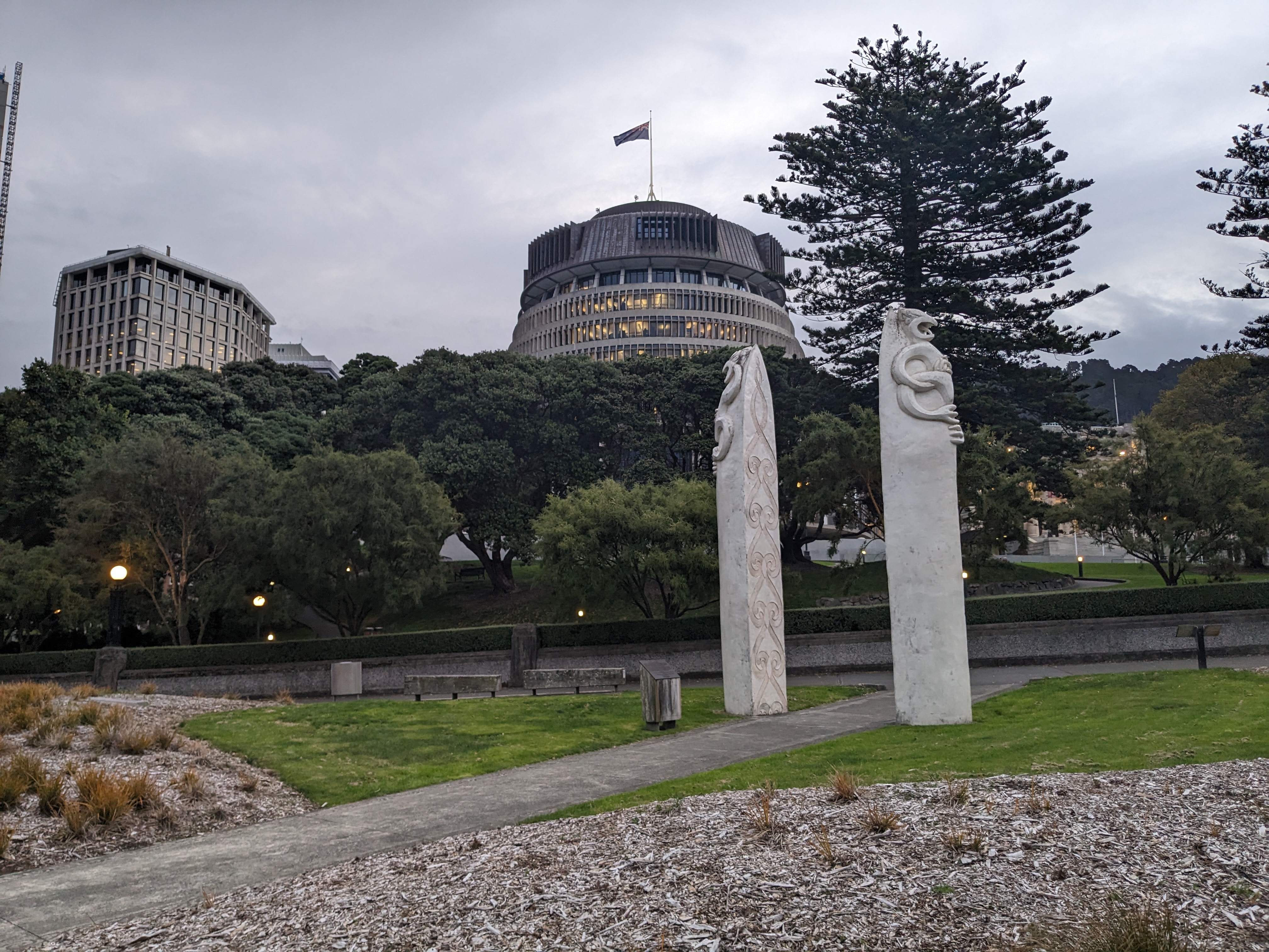After catching our train from Tongariro NP to Wellington more than a week ago, we arrived in the beautiful capital city with time to walk to our hostel (cutely named the Dwellington) and pick up a delicious fish and chips dinner en route. I took the opportunity to take a quick walk around the city and found it fairly quiet after 9 pm on a Thursday. Really enjoying the architecture, but fairly tired, I found my way back to the hostel for the evening.