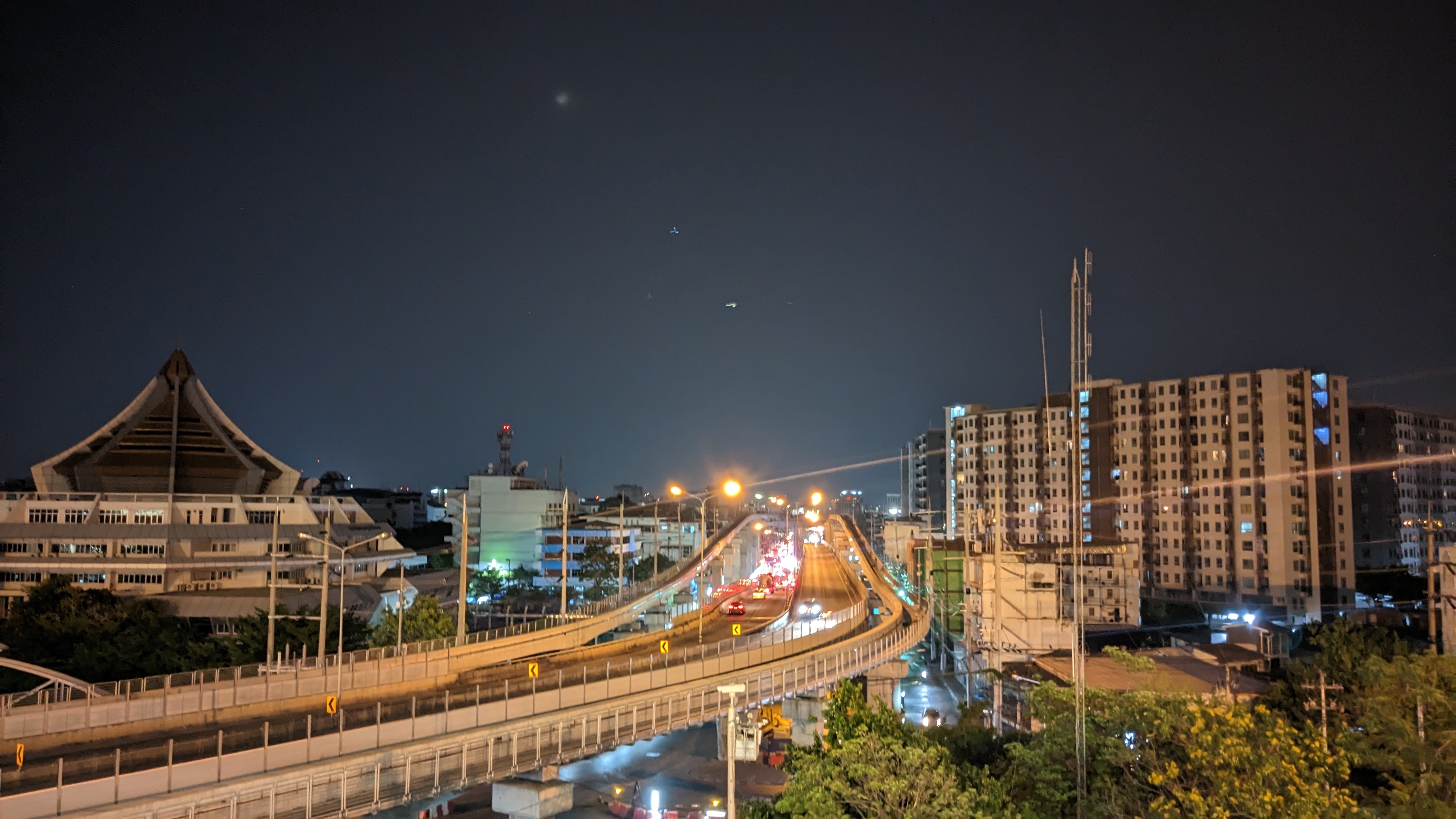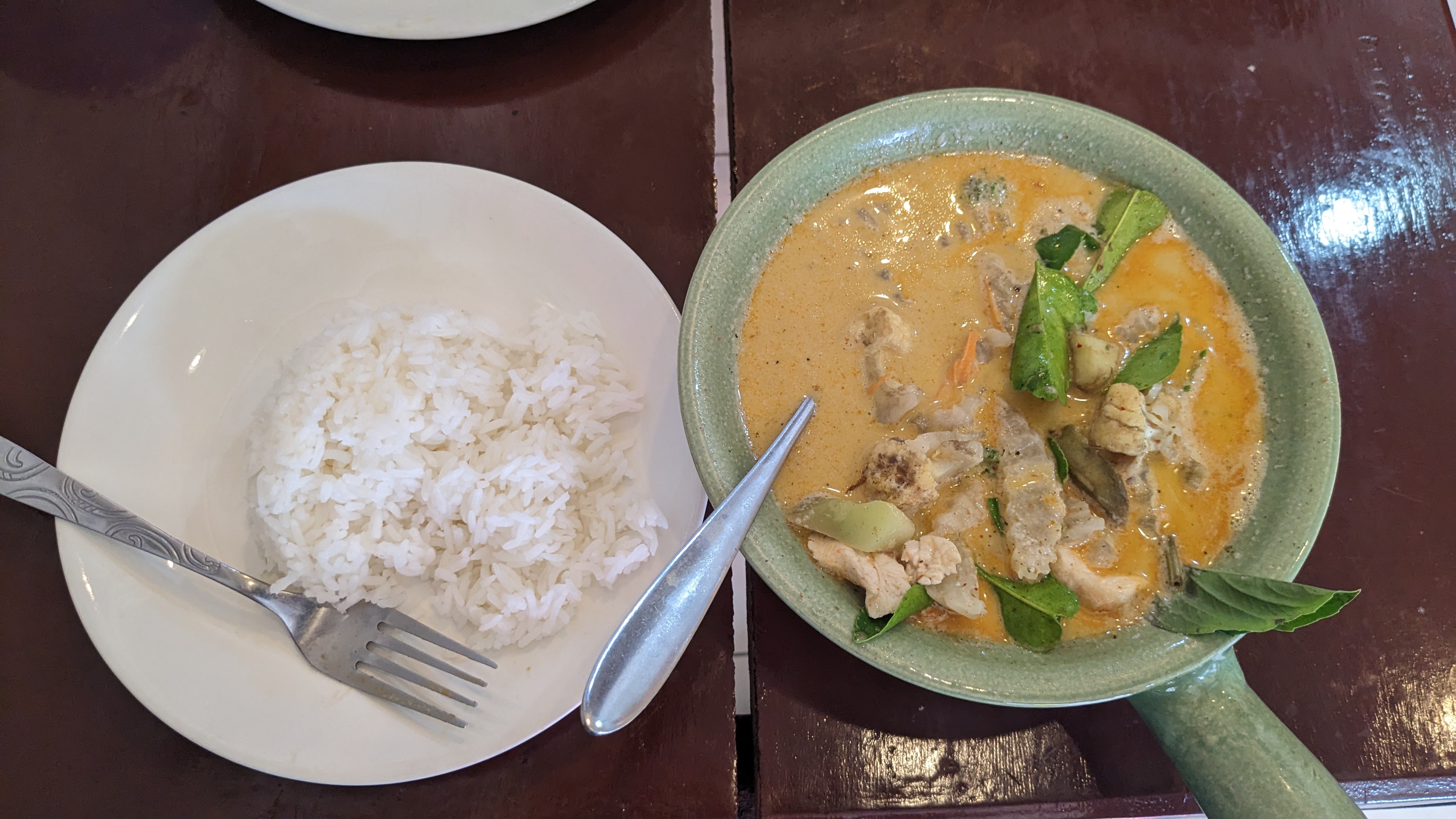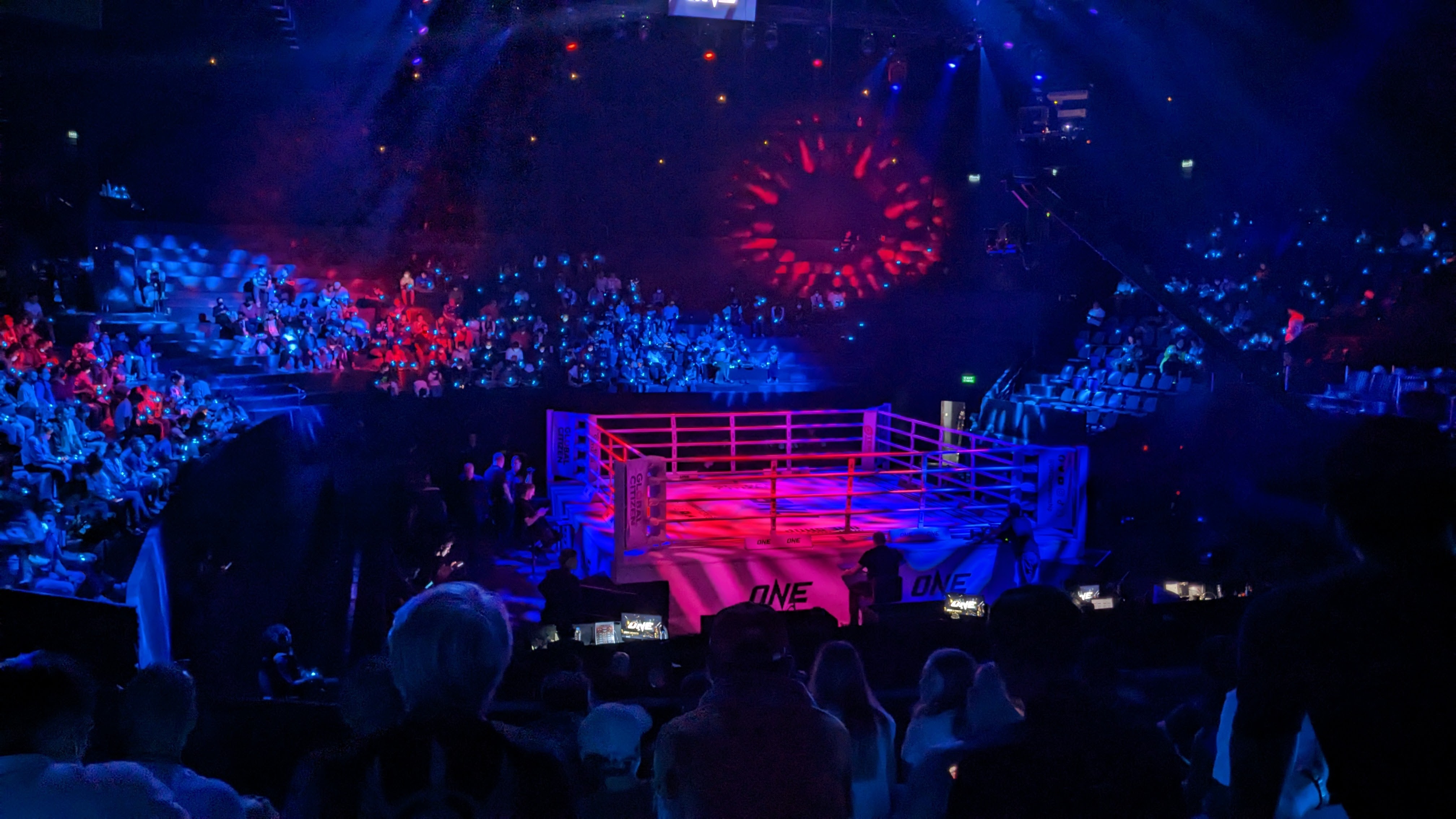 That evening Aaron and I had planned to go to a local Muay Thai fight, which seemed particularly appropriate given that it is a Thai martial art, and Aaron was particularly knowledgeable about it after his recent training. The stadium was across town from our hostel and the fight started during rush hour, so the best option for us to get there was ordering individual Grab bike drivers to take us across the city. We both ordered them through the app, and before too long my driver appeared, handed me a helmet, and I hopped on the back. I was then treated to an impressive exploration of Bangkok traffic through the eyes of an experienced rider. The amount of motorbikes in the area allows for a complete set of parallel rules and traffic flow for the bikes, including tons of lane splitting and weaving between cars in the lane. After the impressive but at times scary ride, I found myself saying goodbye to my driver at the stadium and waiting outside for Aaron as the flow of people into the stadium grew and grew. After a few minutes he arrived and we both got our tickets before entering the stadium and finding our seats. The fight itself was interesting but to me a little underwhelming. It was certainly impressive to see some clearly talented fighters, but by the end of the 4+ hour event, I found myself dozing off a little bit. That said, there were absolutely some exciting moments and it was nice to learn a little more about the sport from Aaron. When the event ended just a little before midnight, the two of us walked out onto the streets and decided to try to use public transport to return to the hostel. This took quite a bit longer than expected with a few transport stops shut down, but we eventually made it within walking distance and enjoyed a final evening stroll back to the hostel, making it to bed a little after 2 am. The next day featured more walking around the city, enjoying delicious food (rice soup and pandan cakes w/ brown sugar syrup pictured) and the beautiful views.