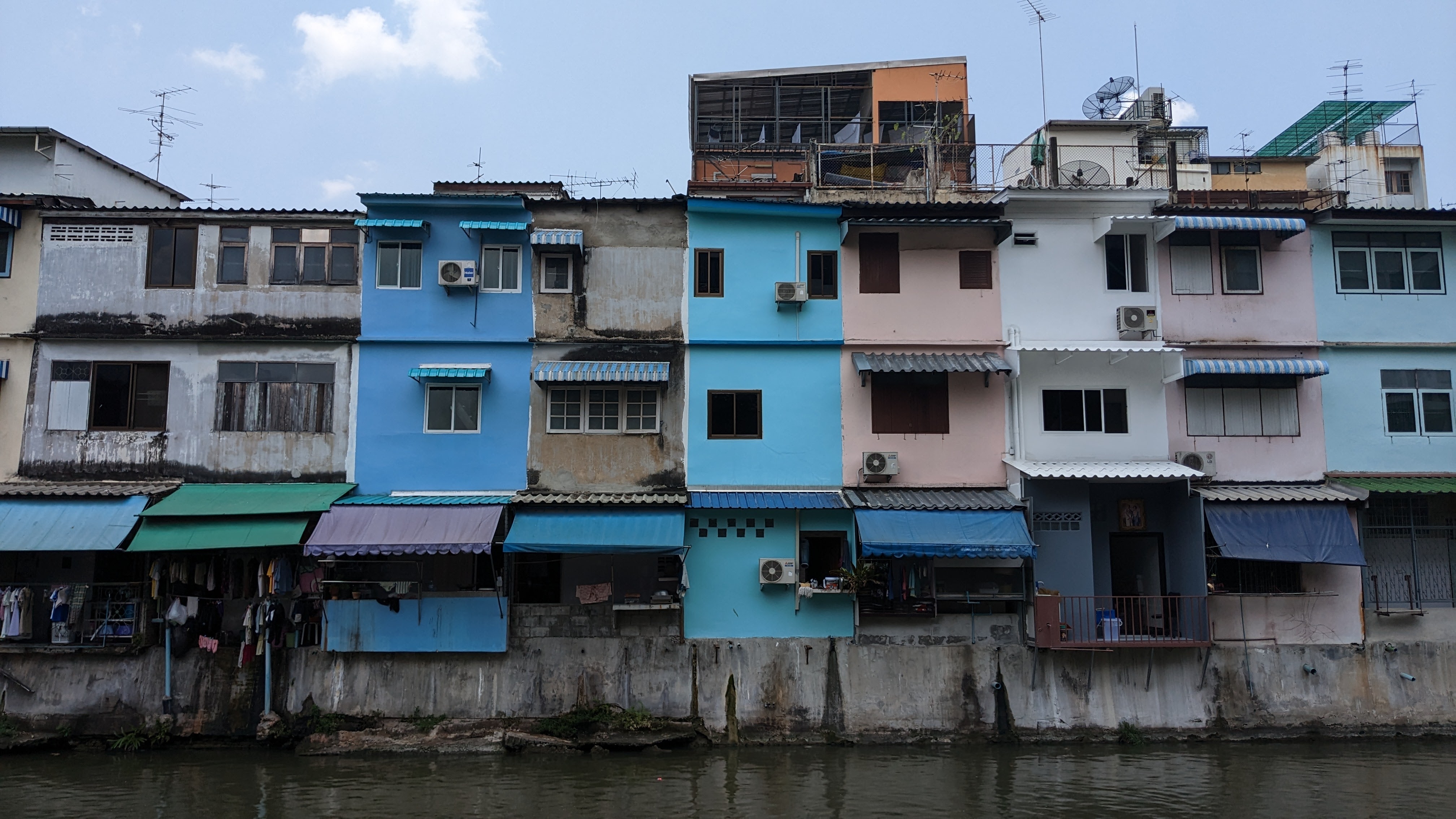 I had another beautiful evening walking around the city and enjoying food from bustling street stalls before eventually retiring, tired from a long day walking around in the heat. The next morning I awoke surprisingly early and was lucky enough to stumble upon a morning market, serving breakfast food and far less inundated with tourists than those in the evening. Without much language in common, I was able to request a meal from one of these stalls, and for only about $1 ended up with a full plate of freshly fried fish (they eat the bones, so I gave it a try– not too bad!) and a delicious bamboo curry over rice. This was accompanied by a house mixture of fish/soy sauce and chopped chilies that I really enjoyed. It was a delicious meal and somehow having to mime my way through ordering only helped to improve it. I was also lucky enough to be joined by another tourist, a Vietnam native named Santana. We chatted while we ate and exchanged information, along with an offer to show me around Ho Chi Minh City when I arrive there. Maybe she will pop up on this blog again! After I finished my meal and parted ways with my new friend, I began to walk around in the neighborhood near my hostel and found myself following along the sides of the Bangkok canals. The small walkways were filled to the brim with plants and local happenings, seemingly a little more off the tourist path than some of the main streets. I saw my first candid cockfight, families drying laundry, cats and dogs lounging in the early morning sun, and restaurant employees cleaning fish and breaking down meat for the day’s business. After a little exploration, I found myself at a museum concerning a king of Thailand, Rama VII or Prajahdipok. Unsure of what I would find, but interested in taking a look at the museum (and taking advantage of the AC), I stepped inside and began looking through the exhibits. The museum was almost entirely biographical, and very clearly from the perspective of loyal and passionate followers of the king. There was a whole exhibit detailing the life of his wife, and the entire rest of the museum traced the kings life from birth, to assuming the throne with little warning after the unexpected deaths of several of several of his brothers in short succession. It also discussed his status as Thailand’s last absolute monarch, and his role in the transition. Ultimately it was a fascinating glimpse into the Thai perspective on an important but long gone figure in the country’s history. After an hour or two at the museum, I continued walking around the city for a little while longer before buying a beautiful mango (maybe the best I’ve ever had) in a small side street and retiring back to my hostel for a little rest in the hottest hours of the day.