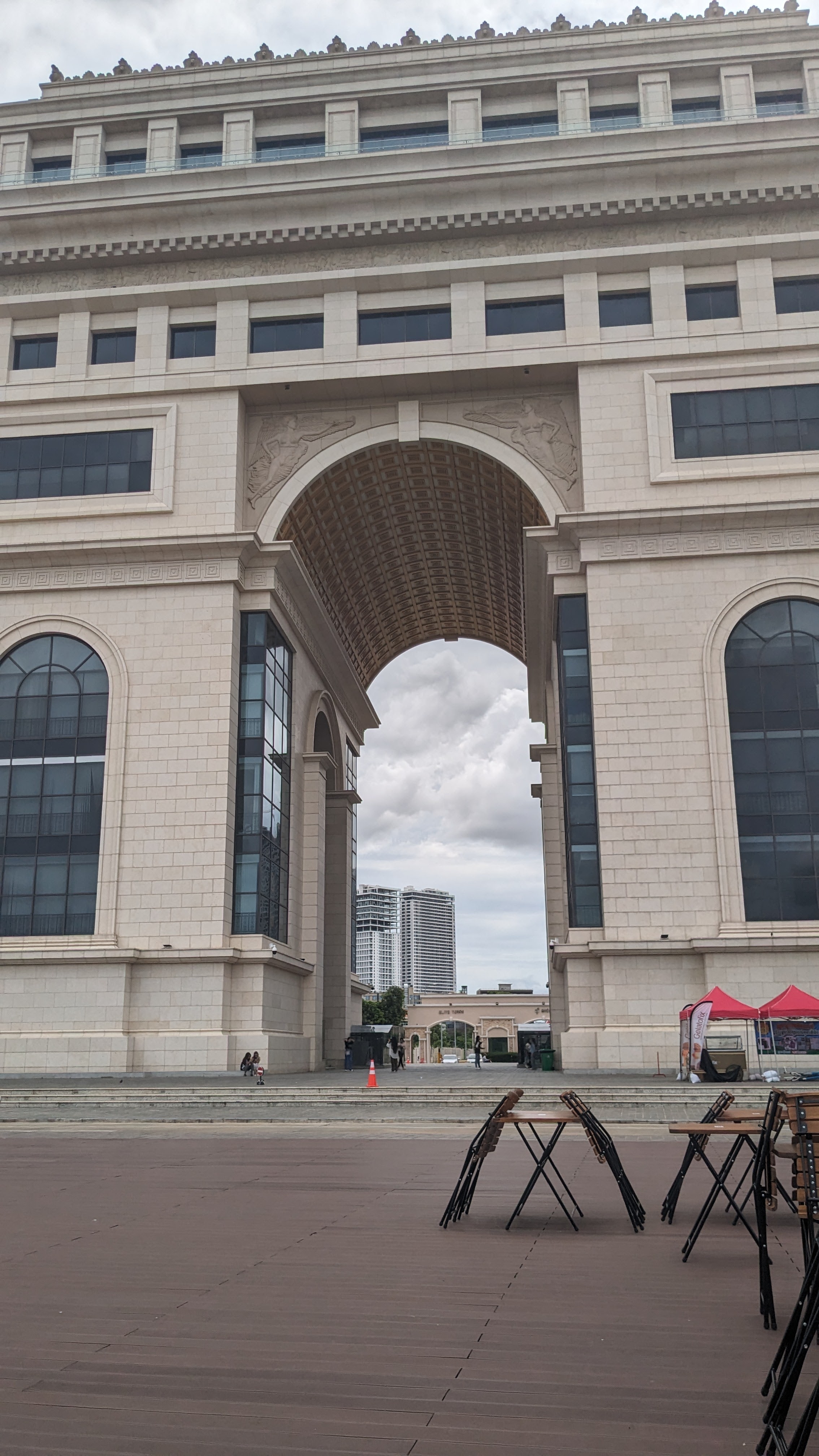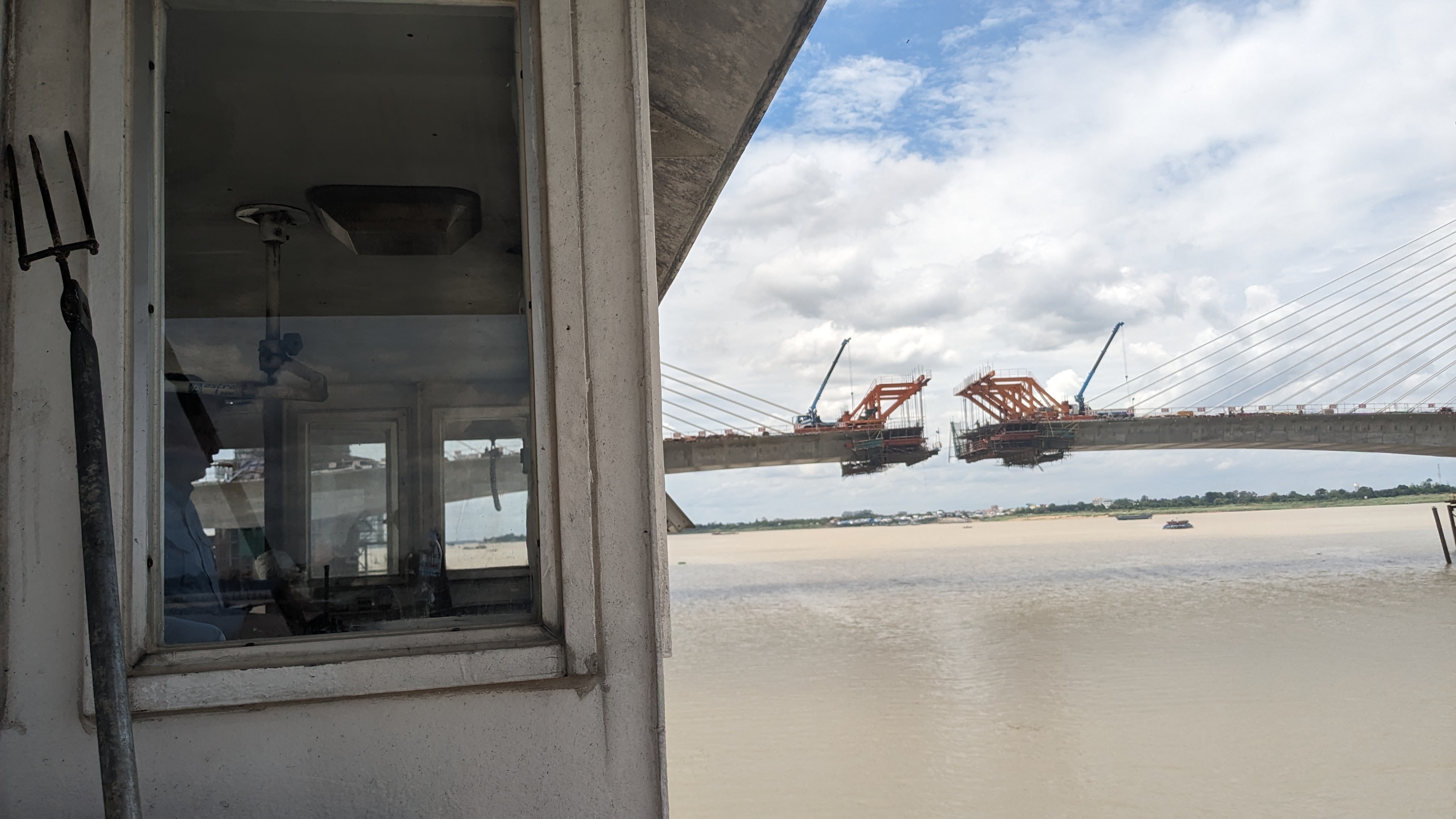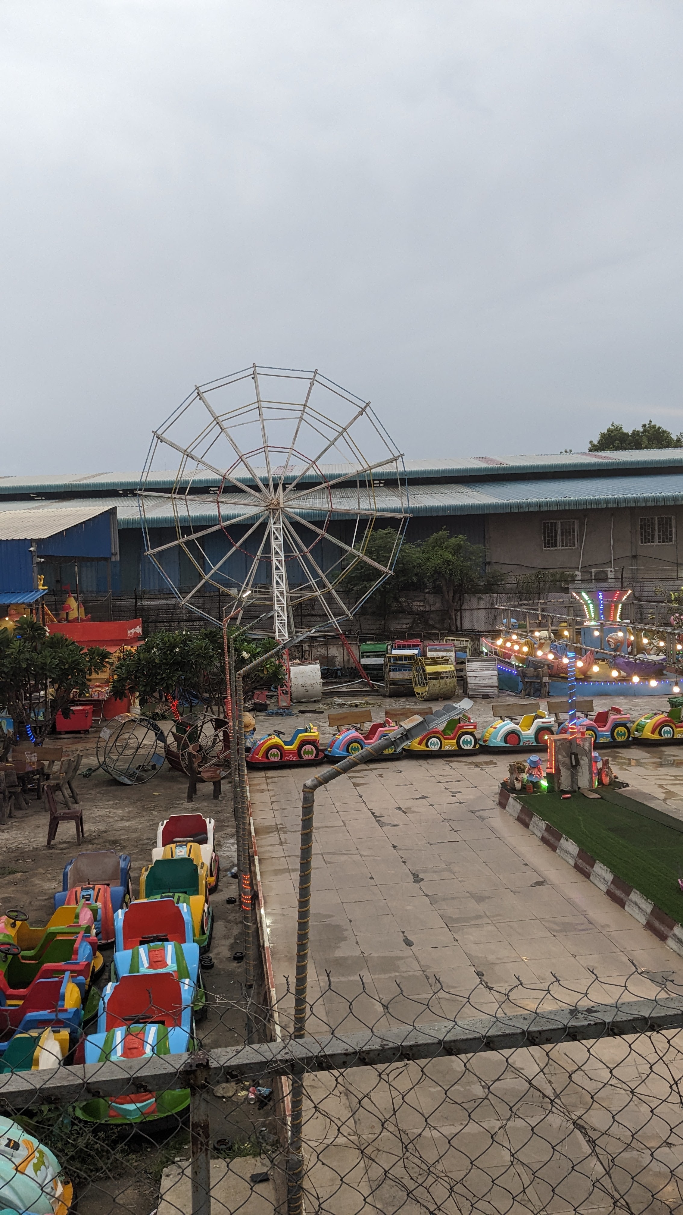 I took the first few days in Phnom Penh to relax and work on writing, enjoying the beauty and convenience of the big city. I met with some friends from Koh Rong, as well as some of the hostel workers that I remembered from my last time there. After Aude had seen the famous sites from the Khmer Rouge, which I had seen on my last time in the city, we took a day to explore some less well known parts of the city. We started off by walking to Koh Pich, an urban island filled with development, but very few people. There were several beautiful buildings, some seemingly abandoned, and we got the opportunity to look around lots of interesting places. Eventually we decided to take a commuter ferry to Koh Norea, a much bigger island just down the river. The ferry itself was an interesting experience, as we were the only two people boarding on foot. The ferry staff was nice enough to allow us to climb up through the ship and enjoy the short ride up on the bridge with the captain. We enjoyed the views of the river and a nearby bridge under construction, but before we knew it the ride was over and we found ourselves on land once again, dodging motorcycles and cars as we left the small ferry port. Koh Norea was at once obviously much poorer and older, filled with small dusty streets and winding alleys. It was a little late for lunch when we realized we were both quite hungry and sought out a restaurant that was still open- most had already closed until dinnertime. Eventually we discovered a fancy local restaurant, complete with hammocks and running water with fish swimming around surrounding all of the tables. It was a little expensive, but the portions were absolutely massive, and there was an adorable puppy that came and played with us for a while while we relaxed and ate. Eventually we continued walking, and after a while arrived in a much richer neighborhood. This area was filled with large community developments protected by gates and guards, fancy gyms and community parks. The centerpiece was a “Europark” complete with miniature replicas of the Eiffel Tower, Big Ben, The Sydney Opera House. There was a miniature canal with gondoliers ferrying customers up and down, as well as a replica Dutch windmill. It seemed like it was mostly an attraction for wealthy local couples and families, complete with many photo opportunities and expensive restaurants lining the park. It was a cool experience, and after relaxing there for a little bit and watching the people enjoy themselves, we were more than ready to head back to the hostel where we were staying. We did a little more exploring around the city, but before too long, both of our visas were about to expire, and we both had the necessary visa to proceed into Vietnam, so we booked a bus that would take us all the way to Ho Chi Minh city. Excited to explore a new country and to have a traveling companion for the moment, I was very happy when the next step of my journey began.